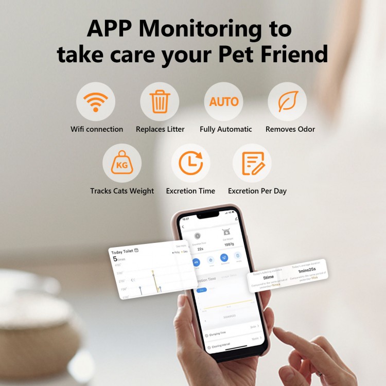 Fully Automated Self-Cleaning – Automatically senses usage and initiates a thorough cleaning cycle, sifting and isolating waste into a sealed compartment.